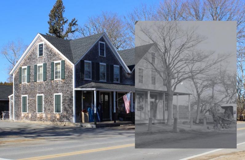 Alongside each historic photo is a contemporary shot of the same site with or without the original defining home or business. Exhibit curator Anna Barber spent months traveling around the Island on a photo shoot project, lining up the shots so that they correspond as closely as possible to scenes in the museum’s archival photos.