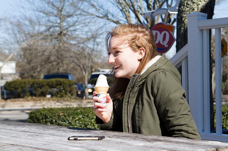 Paige Poge kept her order classic with a vanilla cone with sprinkles. She enjoyed her ice cream outside at the picnic table with her friend Daniel Ravard, who ordered an oreo blizzard. “It’s a little bit cold, but it was worth it,” Paige said.