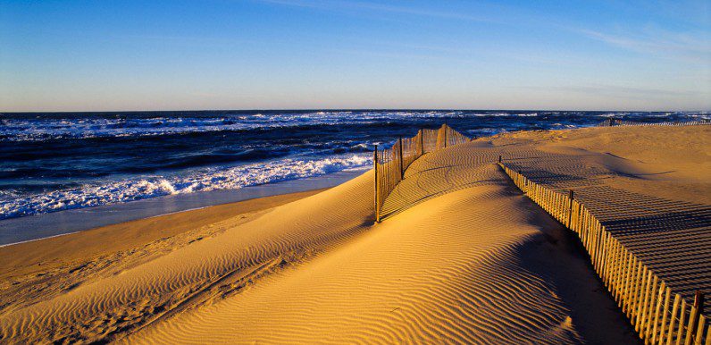 One of the most popular public beaches on the Island is Edgartown’s South Beach, complete with lifeguards, surf, a volleyball net, and parking. Stretching out nearly three miles, you can stake out your own quiet spot in the middle of the two “forks” (right or left), or join the crowds that tend to gather at each end. If the surf is too strong for the young folks, there are protected waters on the Katama Bay side.