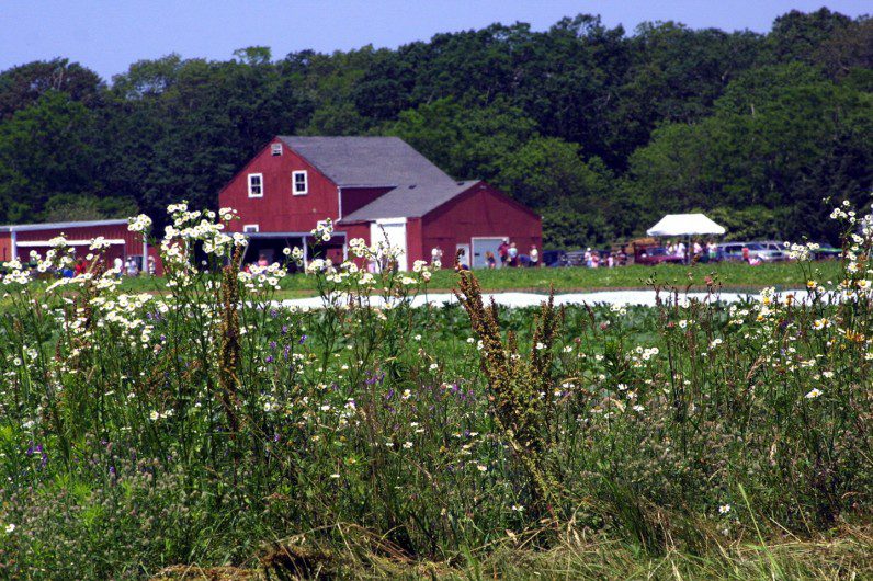 From the Land Bank’s description: Thimble Farm was long a fixture on the Island, known for its innovative hydroponic greenhouses. The land surrounding the greenhouses is flat and well-suited to farming. The Land Bank purchased the land’s development rights, plus a circumferential trail leading past Little Duarte’s Pond, which is a designated “special place” under the Martha’s Vineyard Commission law.