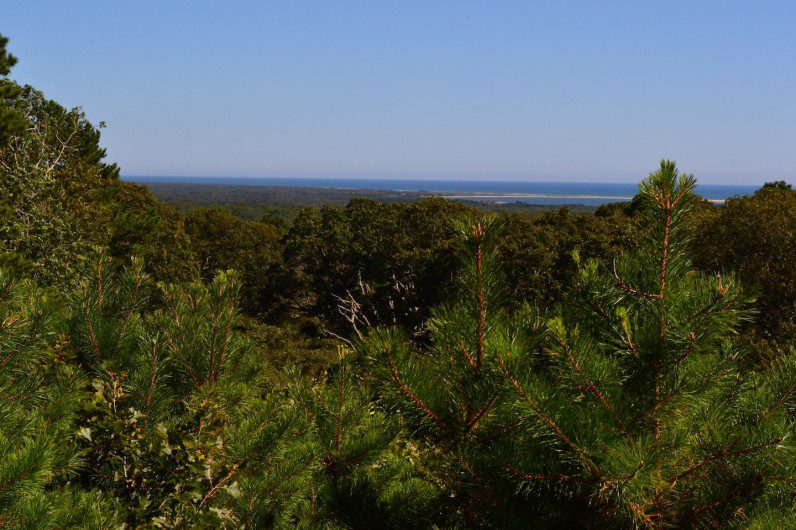 From the Land Bank’s description: Two streams — the Mill Brook and the Tiasquam River — flow out of Chilmark and unite in West Tisbury to feed the Tisbury Great Pond. In the 1980s and 1990s the land bank made a series of significant investments in the Mill Brook valley, chief among them the Waskosim’s Rock Reservation and the Square Field. By 2000 opportunities were opening up in the Tiasquam valley; Tea Lane Farm resulted, as did the Tiasquam Valley Reservation. The reservation ranges from the river itself, surrounded by its swamps, up to a ridge some 175 feet above sea level and oriented out toward Tuckernuck Island.