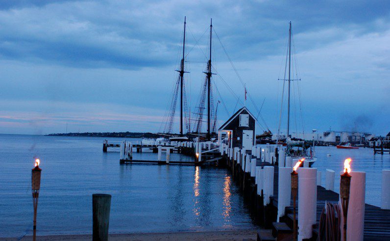 Vineyard Haven is still the hardest working harbor on the Island, the port of entry for virtually everything imported from off-Island. It’s also a famous center of wooden boat building and maintenance, with the tall ships of the Black Dog empire usually at anchor in the harbor and the legendary boat yard of Gannon and Benjamin turning out the worlds most beautiful handmade sailing yachts.