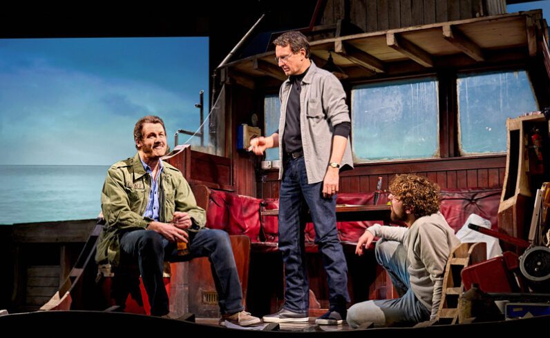 Throughout the play, the character of Robert Shaw struggles with the script of Quint’s famous speech about his survival of the sinking of the USS Indianapolis — the real-life tragedy in which hundreds of Navy sailors died, with somewhere from a few dozen to over a hundred killed by shark attacks.